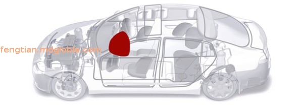 搭载于副驾驶席的仪表板内侧。在车辆发生正面撞击时,气囊展开,保护副驾驶席的乘客。